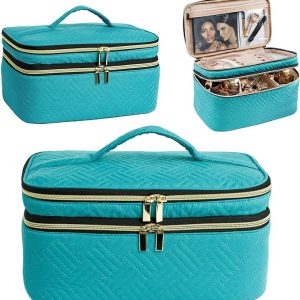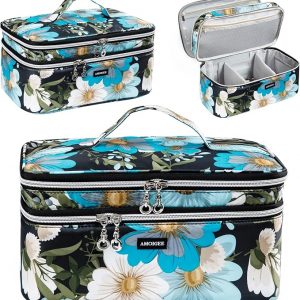 AMOIGEE Large Makeup Bag, Travel Makeup Bag Organizer, Double Layer Train Case Makeup Bag, Toiletry Bag for Makeup Brushes, Full Size Bottles, Palettes Sponge, Cosmetic Organizer