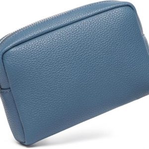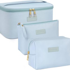 MAANGE Makeup Bag Large Cosmetic Bag with 2pcs Small Makeup Bags Portable Leather Travel Makeup Bag Set Toiletry Bag Make Up Bags for Women and Girls (Blue)