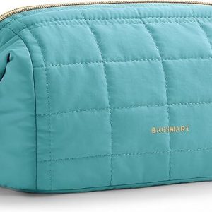 BAGSMART Makeup Bag Travel Cosmetic Bag, Puffy Padded Make Up Bags for Women Makeup Organizer Case, Wide-open Pouch Purse Travel Essentials Toiletries Accessories Brushes, Teal