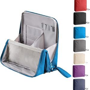 NISHEL Travel Toiletry Bag for women, Portable Hanging Organizer for Travel-Sized Shampoo, Conditioner, Brushes Set, Makeup Accessories, Medium Size, Lake-Blue