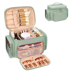 OCHEAL Makeup Bag, Portable Cosmetic Bag, Large Capacity Travel Case Organizer, Black Makeup Bags For Women Toiletry Bag for Girls Traveling With Handle and Divider-Light Green Large