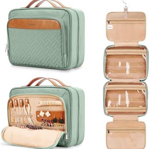 Toiletry Bag for Women with Jewelry Organizer Compartment, Travel Makeup Cosmetic Bag with Hanging Hook for Full-sized Toiletries, Shampoo – Green