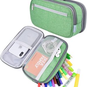 YONZONE Big Pencil Case Large Capacity Pencil Bag Pouch Pencil Pen Case Holder Marker with 3 Compartments for Office Desk Supplies Organizer Storage Makeup Bag, Green