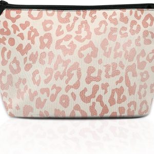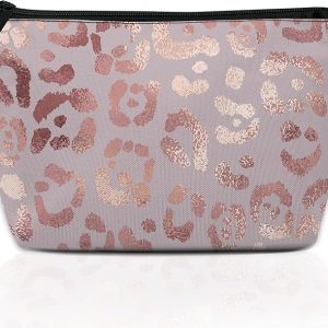 Rose Gold Leopard Makeup Bag for Purse, Waterproof Funny Cosmetic Bag for Women, Zipper Travel Toiletry Pouch Gift 9.5×5.9 Inch