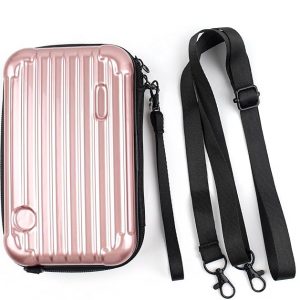 Framendino, Rose Gold Hard Shell Cosmetics Case Carrying Bag for Toiletry Mini Cross Body with Detachable Grip Rope and Shoulder Strap Women