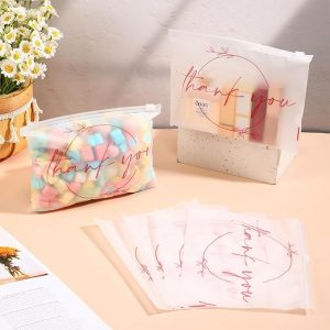 Ireer 100 Pcs Thank You Gift Makeup Bags EVA Clear Cosmetic Bag with Zipper Mini Makeup Thank You Toiletry Cosmetics Bulk Gifts for Women Birthday Daughter Sister(White, Rose Gold)