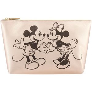 Disney Mickey and Minnie Mouse Women’s Makeup Bag, Small Travel Cosmetic Zipper Pouch Organizer, Rose Gold
