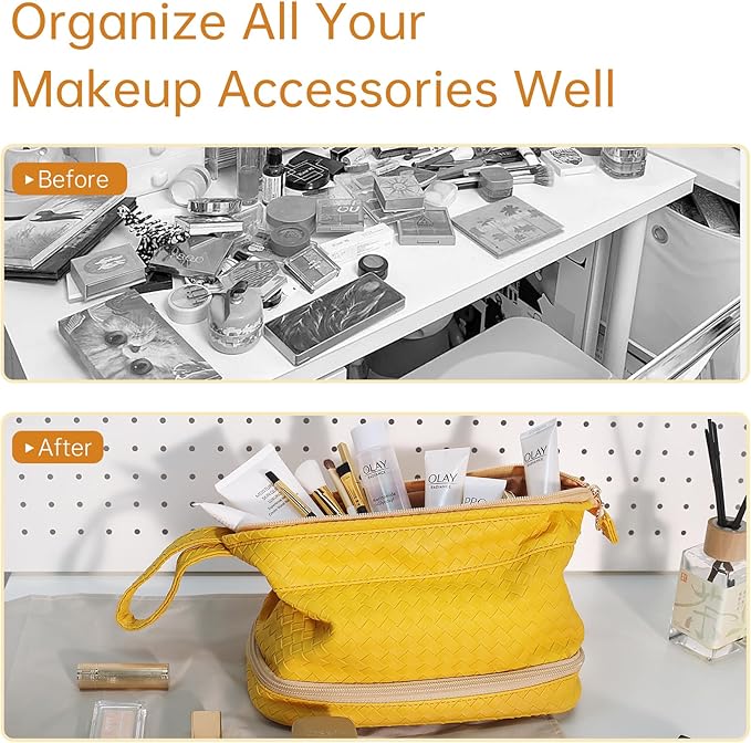 - Smart Multi Functional Design:Functions as both a cosmetic organizer and toiletry bag. Ideal for daily use, vacations, or business trips – keeps makeup, brushes, and skincare products neatly separated