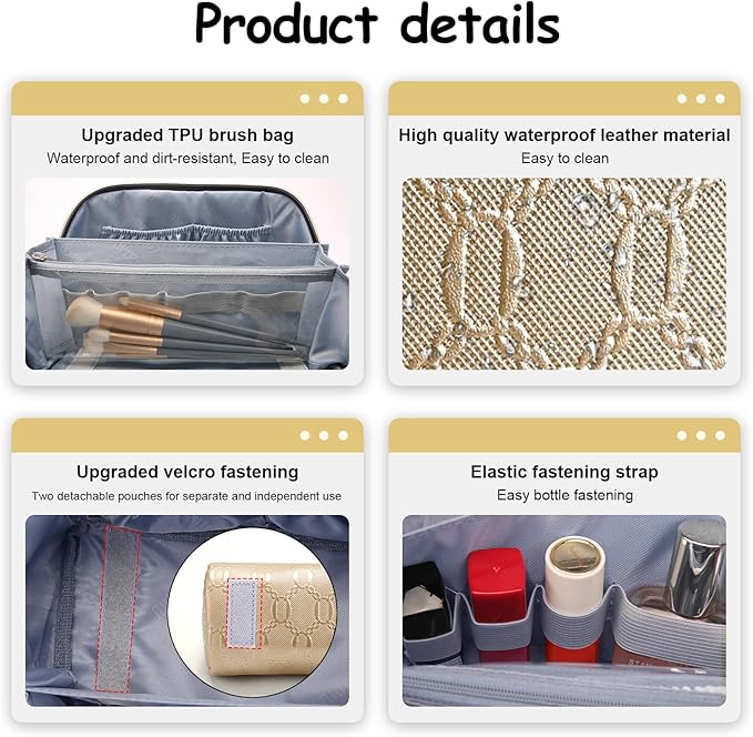 • Multifunctional Makeup Bag for Travel: Designed to be dirt-resistant and waterproof, this makeup travel organizer bag is suitable for various settings, whether it’s on your dresser, in the bathroom, outdoors, in the car, or packed in your luggage. Keep it by your side to meet your makeup and touch-up needs anytime, anywhere.