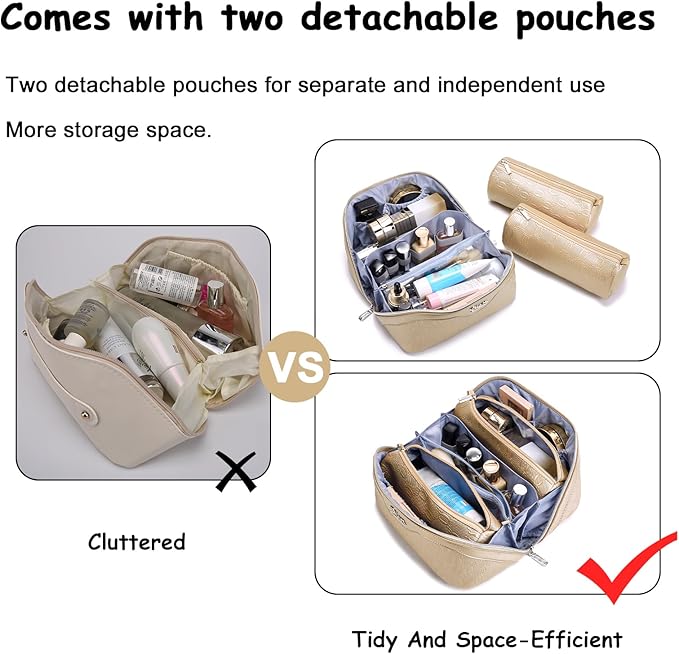 • 3 Pcs Makeup Bags Set: This travel makeup bags set comes with two detachable zipper storage bags and five compartments, ensuring optimal organization for your skincare products and cosmetics. Perfect for your travel, business trips, vacations, outdoor activities and picnics.
