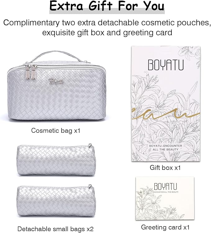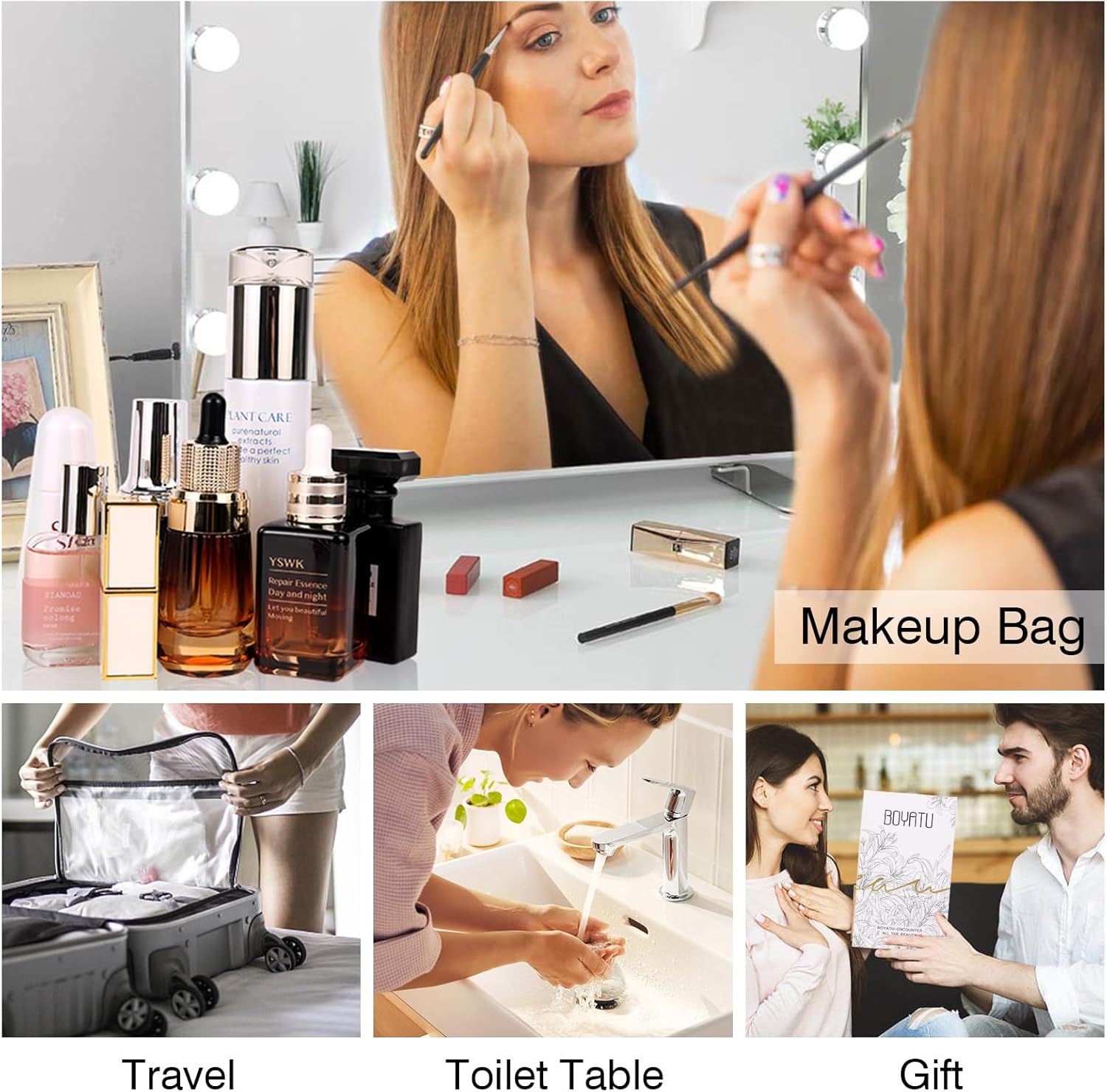 • Travel Makeup Bags for Women: This women’s cosmetic bag is made of high-quality PU leather, soft to the touch, waterproof and durable. Elegant appearance design will bring you countless awesome compliments. BOYATU portable travel cosmetic bag is a great choice and ideal companion for you.
