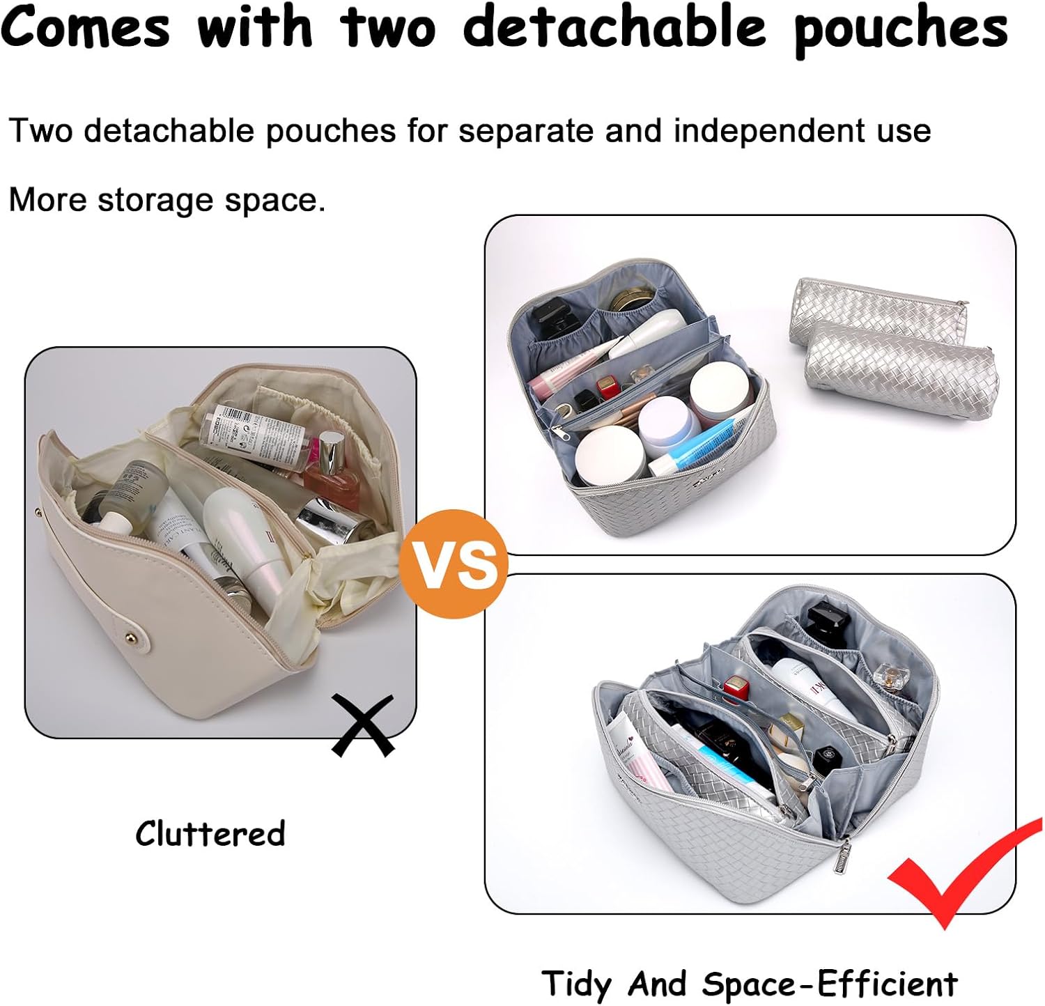 • 3 Pcs Makeup Bags Set: This travel makeup bags set comes with two detachable zipper storage bags and five compartments, ensuring optimal organization for your skincare products and cosmetics. Perfect for your travel, business trips, vacations, outdoor activities and picnics.