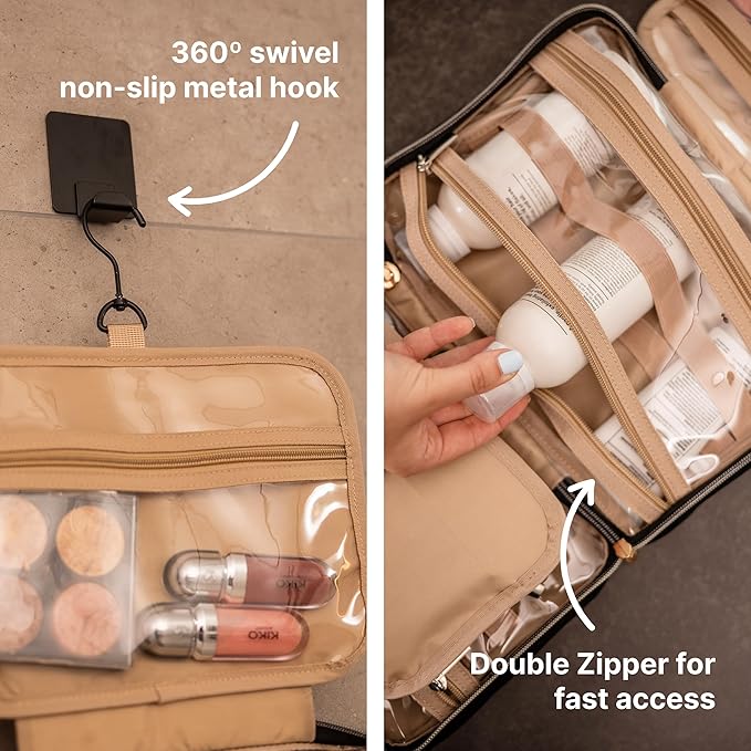• Hanging Toiletry Organizer Bag: Store all your toiletries, from hair products to makeup to dental accessories in our water-resistant travel makeup bag. Our travel cosmetics organizer includes added padding to protect your valued toiletries, and a 360-degree swivel hook so you can hang our bags wherever you need it whether it be an overnight trip, weekender excursion, cruise or international airplane travel.