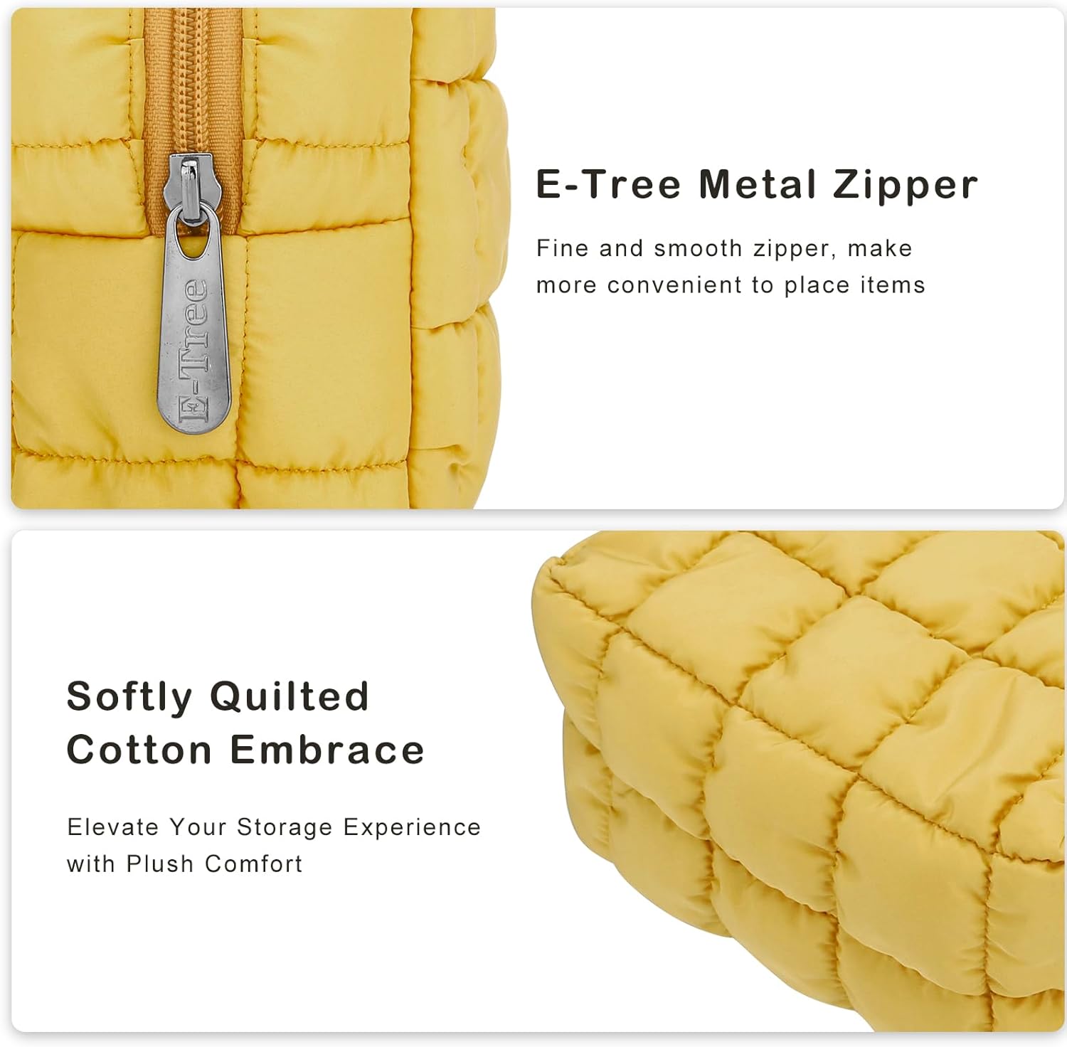 - E-Tree Hardware Zippers & High-Quality Cotton: durable and lightweight, with a chic quilted pattern and a soft, cotton-padded texture, ensuring both style and comfort., combining with exquisite workmanship with fine stitching and strong zipper closure to ensures your accessories stay secure Inside.