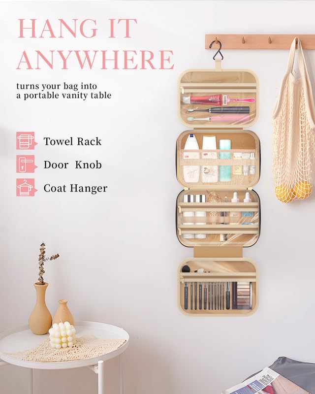 • STURDY HOOK DESIGN: Featuring a premium metal hook, the HOTOR cosmetic travel bag offers the convenience of hanging from a towel rack, coat hook, or any available space. This not only showcases your toiletries and cosmetics for easy accessibility but also saves valuable bathroom counter space. The sturdy metal hook is designed with a retractable feature, allowing it to be neatly stowed away when not in use.
