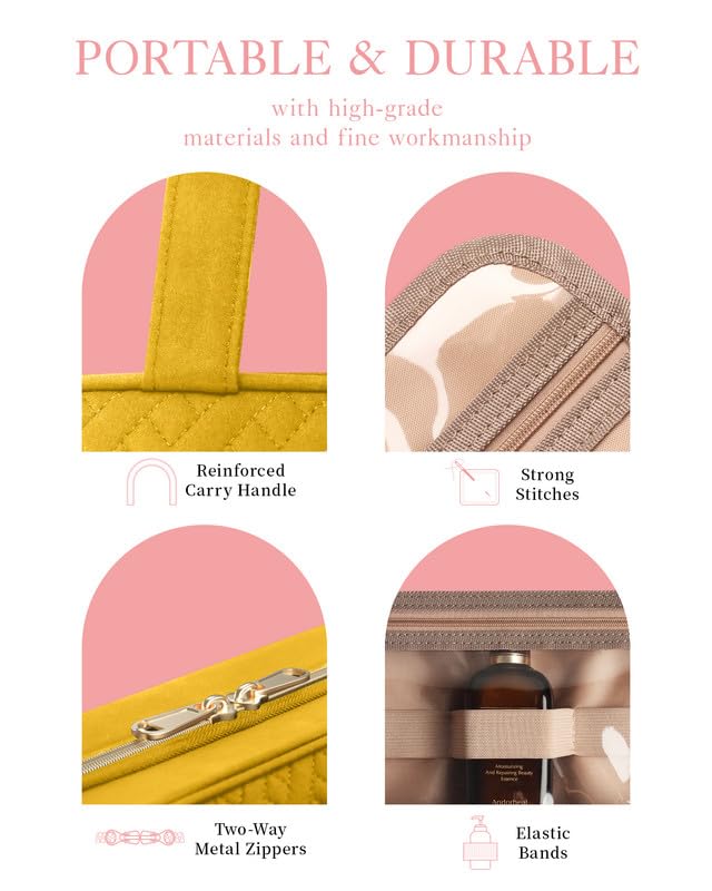 HOTOR Travel Toiletry Bag w/Hanging Hook – Spacious Toiletry Bag Essentials for Women & Men, Makeup Bag/Big Comparment, Waterproof for Travel Accessories, Medium, Yellow