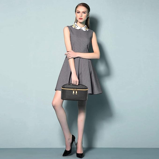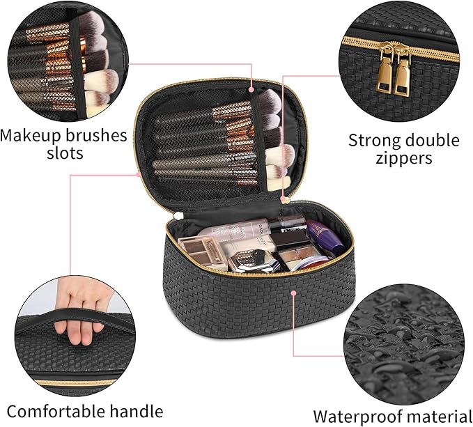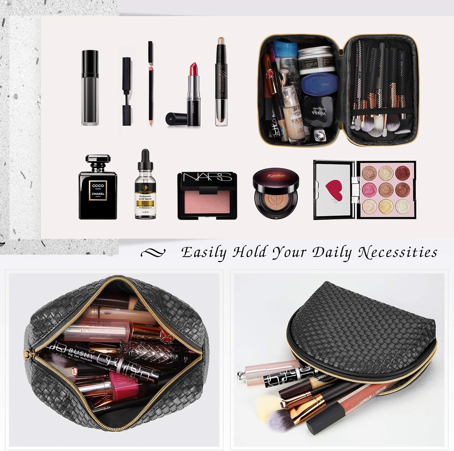 • Durable & Water-Resistant: Classic and elegant cosmetic bag is made of PU woven leather and polyester lining. It is durable, waterproof, dirt-resistant and scratch resistant. Coupled with the advanced and smooth metal double zipper design, when the tools are stored neatly, you will easily get what you need.