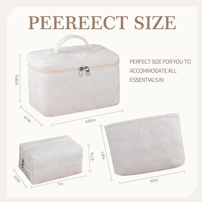 - 【Different Sizes】The makeup bag kit contains three different sizes of bags.big size:9.66*6.88*4.7in,medium size: 9.8*7.8in,small size: 7 x 4.7 x 3.9 inches.Different sizes are available to meet your diverse needs.