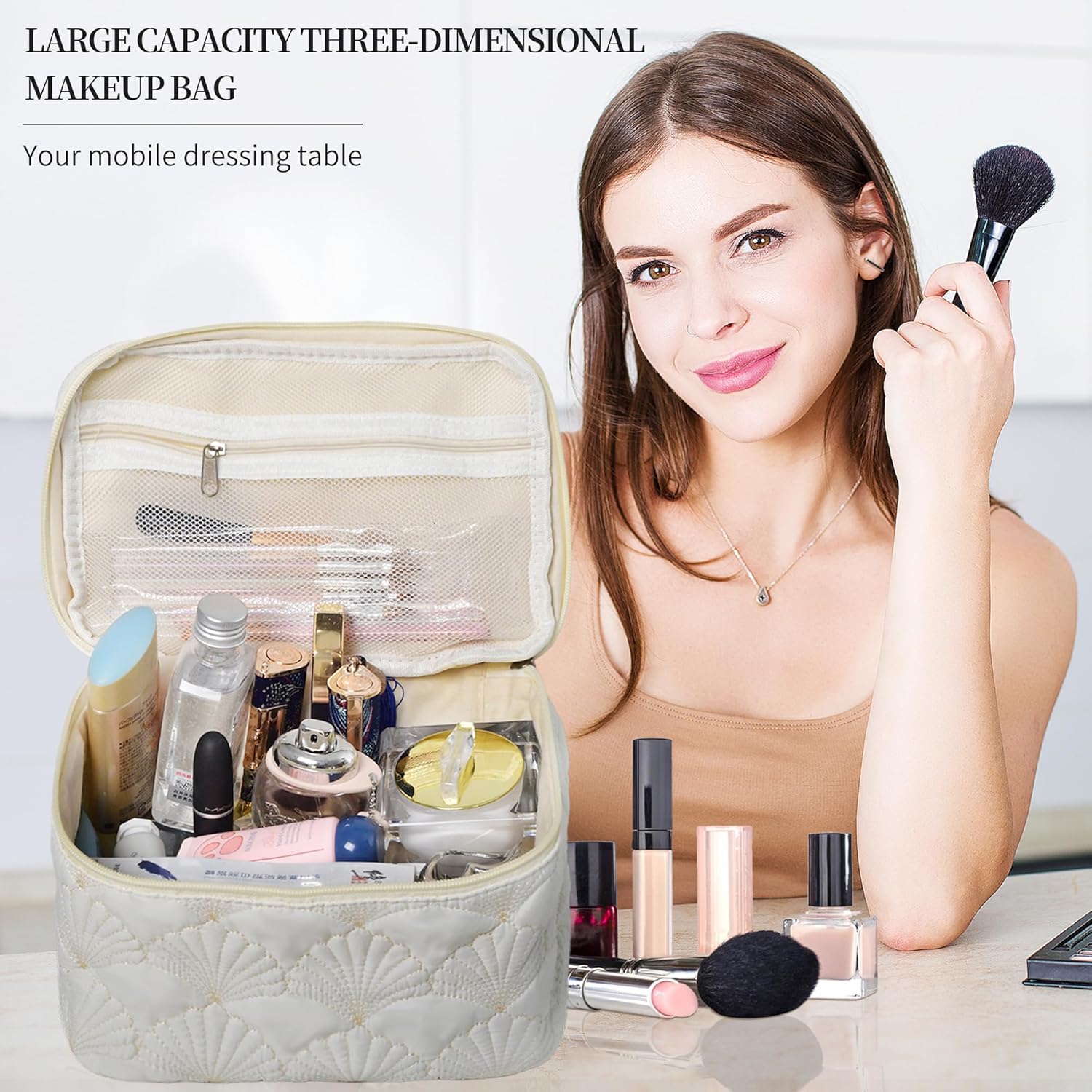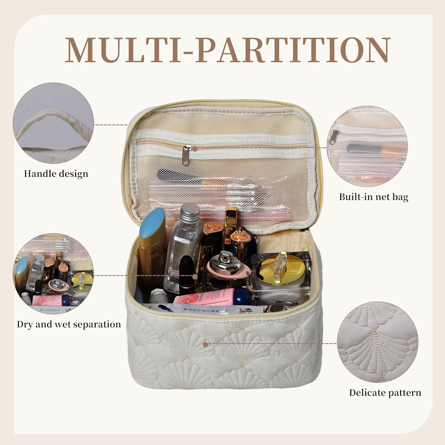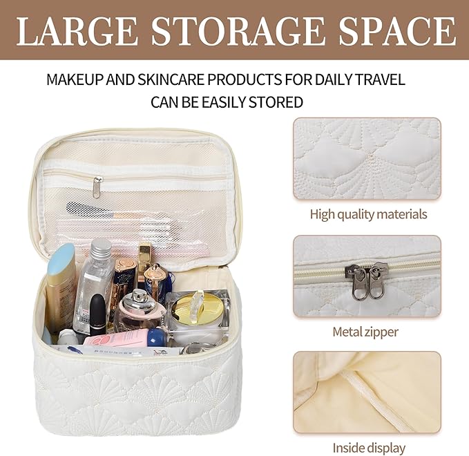 - 【High-Quality Material】This cosmetic bag made of high quality material quilted and embroidered.The lining uses high-density canvas, combined with high-quality zippers making it an excellent product.