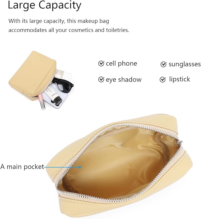 • 【Neat and organized】Makeup bags are stylish and practical, keeping cosmetics and other products organized and easily accessible. When full, it can stand upright on its own, so it can be easily carried in purses, large bags, and suitcases.