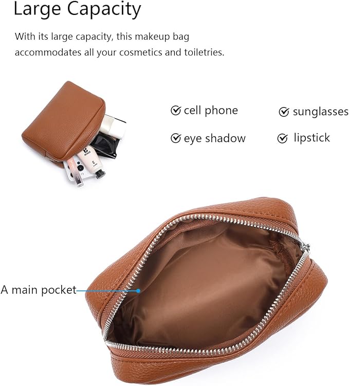 - 【Neat and organized】Makeup bags are stylish and practical, keeping cosmetics and other products organized and easily accessible. When full, it can stand upright on its own, so it can be easily carried in purses, large bags, and suitcases.