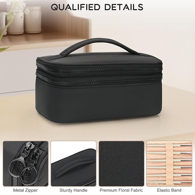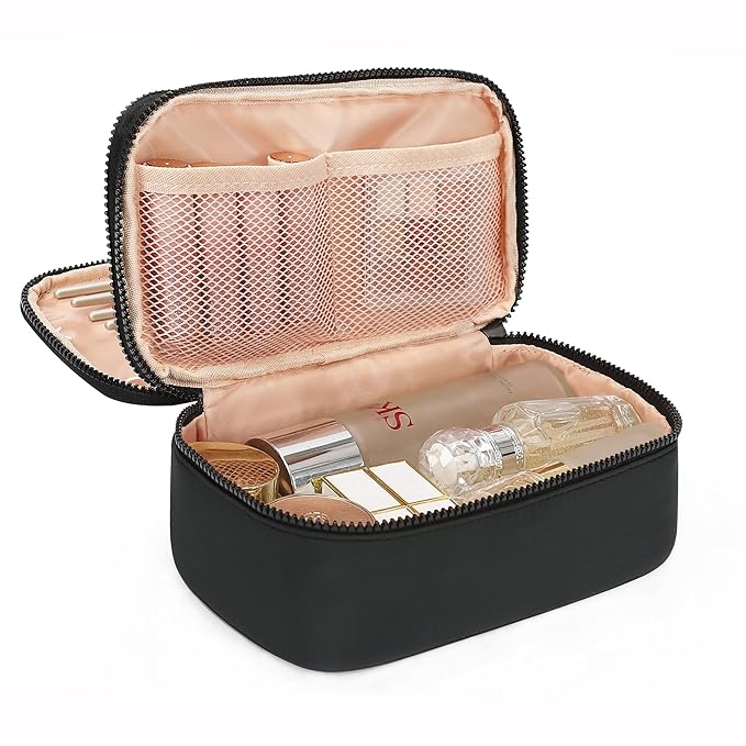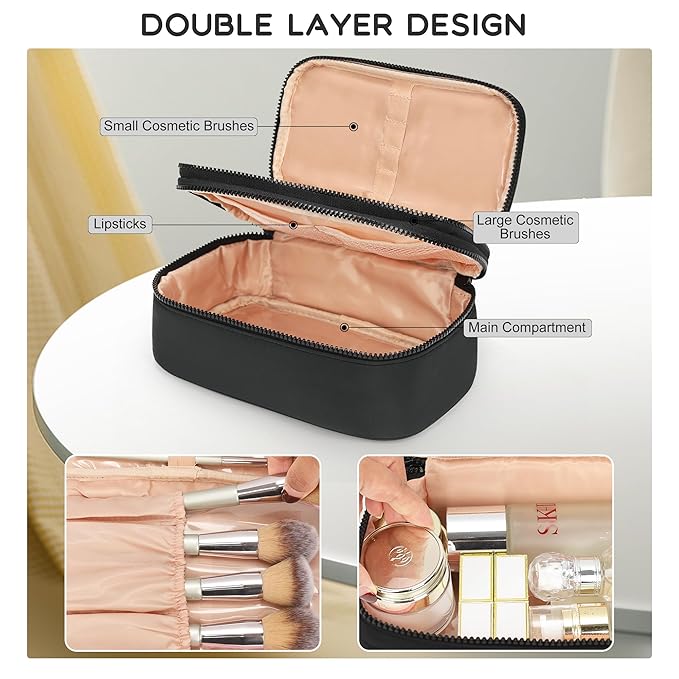 - Double Layer Small Makeup Bag: Multiple compartments for different requests of storage. This makeup bag keeps your toiletry accessories safe and easy to access and use more convenient