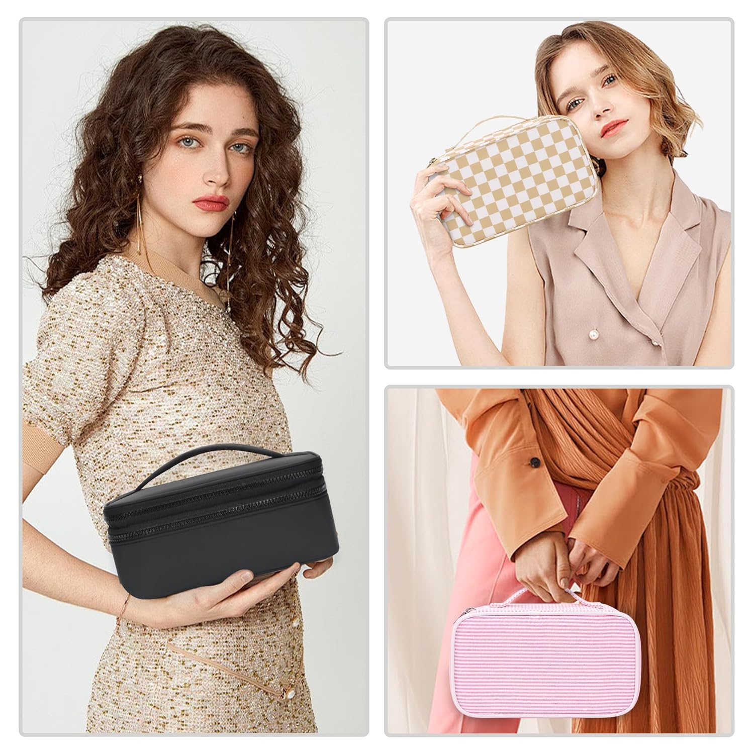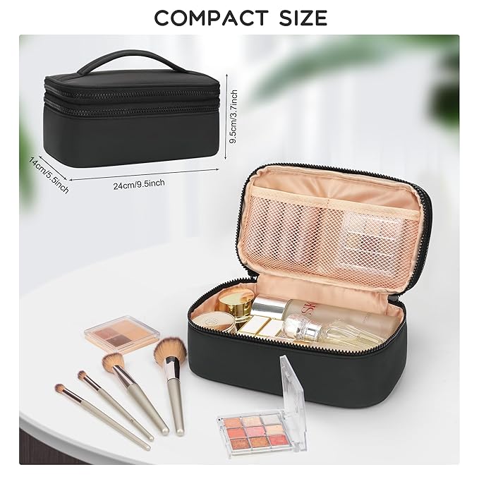 - Compact Travel Makeup Bag: Size with 9.5*5.5*3.7 in, which is lightweight and portable cosmetic bag. It will organize all your beauty essentials neatly in place