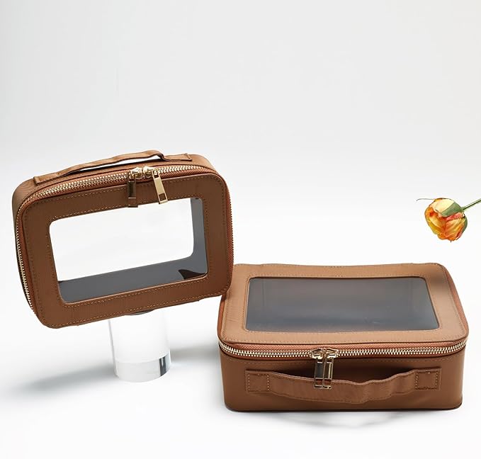 SANHECUN Cosmetic Case with Zipper TSA Approved Storage Box Travel Organizer Pouch Toiletry Portable Makeup Bag Cosmetic Set (2, Brown)